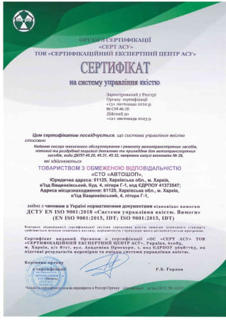 СТО AutoShop має офіційні сертифікати якості, які підтверджують високий рівень обслуговування та ремонту автомобілів різних марок. Ці документи гарантують відповідність міжнародним стандартам, а також надійність та безпеку виконуваних робіт.